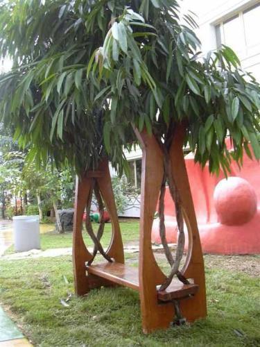 其實,這種將一棵正在生長的大樹改裝成為實用物品的概念并非首次出現。此前,有的稱之為“活樹成形”、“活樹雕刻”、“生活藝術”或是“生態建筑”等等,不一而足。但是,現在以色列特拉維夫大學的工程師和植物科學家們又將這種概念向前推進了一大步,推出了他們自己的“活樹成形”作品,比以往的作品更實用、更好玩,層次更高。目前,科學家們分別在美國、澳大利亞和以色列開展小規模實驗。街燈、大門、運動場建筑完全由活樹制成。不僅僅醫院院內公園的長椅是由活樹造成,而且活樹正在生長的樹還會為自己的長椅遮陰。
