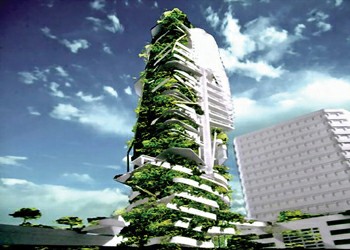 目前,城市的綠化已經(jīng)不僅僅限于地面和樓頂了,建筑設(shè)計師和園林學(xué)家希望讓城市的建筑“從頭到腳”都生機(jī)勃勃。最近,新加坡的建筑師就打算建造這樣一幢大樓,看看他們的設(shè)計圖片,這幢大樓到處都是蔥郁的樹木,可以稱得上一小片森林了。