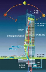 大樓利用太陽能、雨水、風(fēng)能、地?zé)崮艿氖疽鈭D