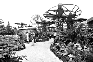 世博會(huì)的一大特點(diǎn)就是,各個(gè)場(chǎng)館的展品同時(shí)也起到了節(jié)能環(huán)保的實(shí)際作用,新加坡的“屋頂花園”就是一個(gè)例子,它讓參觀者欣賞到艷麗的熱帶花卉的同時(shí),也能隔離外界熱空氣。