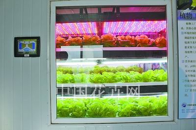 在基地,記者看到全封閉式的環境中,不需要人工栽培,在LED燈光的照射下,一株株生菜在營養液中茁壯生長。公司技術人員房振邦介紹,利用植物工廠可將植物的生產周期大大縮短,而且植物沒有病蟲害。