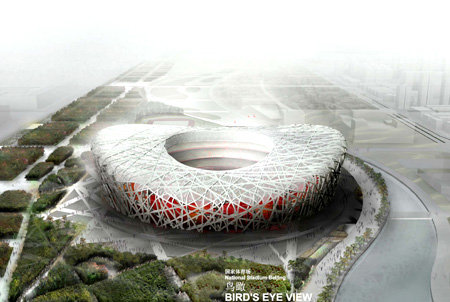 第29屆奧林匹克運動會的主會場,位于北京奧林匹克公園內、北京城市中軸線北端的東側。建筑面積25.8萬平米,用地面積20.4萬平米。2008年奧運會期間,承擔開幕式、閉幕式、田徑比賽、男子足球決賽等賽事活動,能容納觀眾10萬人,其中臨時坐席2萬座。奧運會后,可容納觀眾8萬人,可承擔特殊重大體育比賽、各類常規賽事以及非競賽項目,并將成為北京市提供市民廣泛參與體育活動及享受體育娛樂的大型專業場所,成為全國具有標志性的體育娛樂建筑。 國家體育場的設計方案,是經全球設計招標產生的、由瑞士赫爾佐格和德梅隆設計事務所、奧雅納工程顧問公司及中國建筑設計研究院設計聯合體共同設計的“鳥巢”方案。該設計方案主體由一系列輻射式門式鋼桁架圍繞碗狀坐席區旋轉而成,空間結構科學簡潔,建筑和結構完整統一,設計新穎,結構獨特,為國內外特有建筑。其業主單位是由北京市國有資產經營有限責任公司和中信集團聯合體共同組建的國家體育場有限責任公司。國家體育場有限責任公司負責項目的投融資、設計、建設、運營和管理。國家體育場于2003年12月24日開工,2006年建成并投入試運行。 “鳥巢”是2008年北京奧運會主體育場。由2001年普利茨克獎獲得者赫爾佐格、德梅隆與中國建筑師李興剛等合作完成的巨型體育場設計,形態如同孕育生命的“巢”,它更像一個搖籃,寄托著人類對未來的希望。設計者們對這個國家體育場沒有做任何多余的處理,只是坦率地把結構暴露在外,因而自然形成了建筑的外觀。 “鳥巢”的設計理念 國家體育場坐落在奧林匹克公園中央區平緩的坡地上,場館設計如同一個容器,高低起伏變化的外觀緩和了建筑的體量感,并賦予了戲劇性和具有震撼力的形體,國家體育場的形象完美純凈,外觀即為建筑的結構,立面與結構達到了完美的統一。結構的組件相互支撐,形成了網絡狀的構架,它就像樹枝編織的鳥巢。體育場的空間效果即具有前所未有的獨創性,卻又簡潔而典雅,它為2008年奧運會樹立了一座獨特的歷史性的標志性建筑。體育場就像一個巨大的容器,不論是近看還是遠觀,都將給人留下與眾不同的、永不磨滅的形象,它完全符合國家體育場在功能和技術上的需求,又不同于一般體育場建筑中大跨度結構和數碼屏幕為主體的設計手法。體育場的空間效果既具有前所未有的獨創性,而又簡潔、典雅。從這里,人們可以瀏覽包括通往看臺的樓梯在內的整個區域動線。體育場大廳,是一個室內的城市空間,設有餐廳和商店,其作用就如同商業街廊或廣場,吸引著人們留戀忘返。