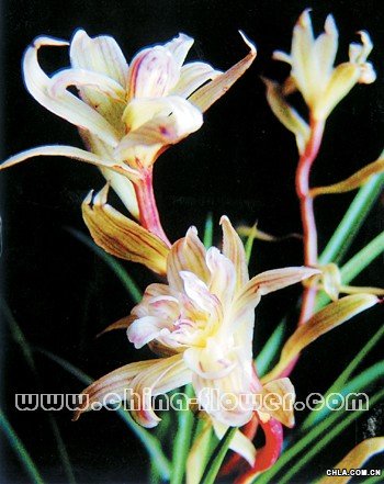 拉丁名:Cymbidiumlian-pan‘TianNuSanHua’