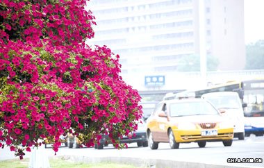 用矮牽牛在安華橋分車帶布置的花卉造型已完工。 競報訊(記者陳琳)6月8日,記者從市園林綠化局了解到,奧運會賽時花卉布置已啟動,奧運花卉開始進入各環路擺“造型”,除奧運中心區擺花要求在7月8日之前完工外,道路花卉布置預計在7月中下旬完成。預計奧運賽時擺花工程需要各類花卉4000萬盆(株),將營造出“花團錦簇”的效果。 三環路安華橋分車帶花卉布置已初現規模。這里的花卉造型主要用垂吊矮牽牛完成,紫紅色和粉紅色兩種垂吊矮牽牛搭成了5個錐型的花架。 矮牽牛花期較長,在常規的氣候條件下,從4月份能堅持到10月底。 市園林綠化局城鎮綠化處相關負責人介紹,二、三、四、五環路的分車帶、交通環島在符合交通規范的前提下布置花卉花壇。道路擺花設計為“五環花帶”,布置上以車行觀賞為主,選用花容器、花帶、立體裝飾等與道路寬度和行車速度相結合有針對性的設置花卉景觀;花卉布置的節奏與寬度要與道路的尺度、行車的速度相協調。在花卉布置上首先考慮“流線性”。而長安街邊,將利用花卉組成問候語,歡迎八方賓客。奧運村、體育賽事節點、賓館住宿節點、商業購物節點、城市開放空間節點、交通樞紐節點的花卉布置上,以人行觀賞為主,花色、景觀會更細致,還會添加一些小品元素,起到“畫龍點睛”的作用。 競報通訊員王小宇/攝
