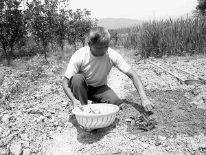 圖為付昌城在示范扦插無菌土桂苗。