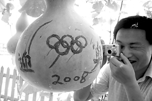 為迎接北京奧運會,嘉定區一家觀賞果園里,農藝師雕刻出奧運葫蘆。