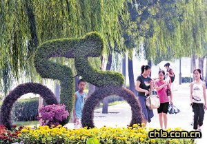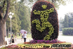 水上公園內布設一批由各色節水型時令花卉組成的奧運主題花卉雕塑,烘托出濃濃的奧運氛圍。