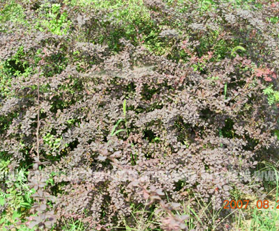 景觀評價:金山繡線菊葉色艷麗,萌生能力強,地上部分冬季枯死,第二年春天發出新葉。冠形整齊優美,枝繁葉茂,也早春和秋后為鮮艷的黃色,入夏則也轉為綠色,頂端葉仍為黃色。花序為紫色傘狀花序,花期長達兩個多月。為北方地被植物中的優良品種。 適應性評價:金山繡線菊適應性較強,抗寒抗旱能力較強,病蟲害較少,且其萌生力強,不需修剪。很適合北方地區應用。 8、紫葉小檗、金葉女貞: