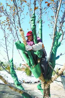 北京:珍稀苗木穿上“防寒服”