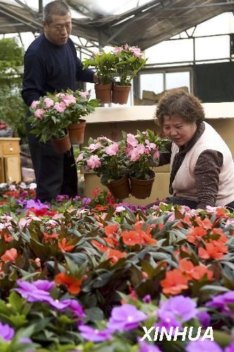 11月29日,烏魯木齊明珠花卉市場兩位店主在整理準備銷往南疆阿克蘇地區的四季鳳仙。