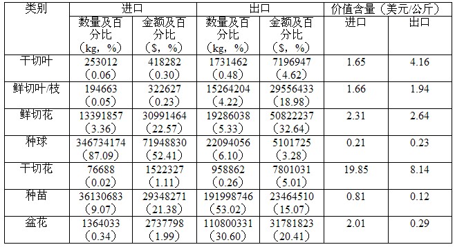 2008年中國(guó)花卉進(jìn)出口主要數(shù)據(jù)