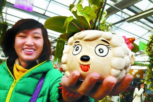 北京:年宵花卉市場“喜羊羊”花盆熱賣