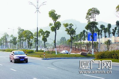 環島干道黃厝段的道路綠化令人賞心悅目。 環島干道、成功大道、仙岳路三條快速干道春節前將呈現新面貌。將來,大量紅色系樹木如木棉、鳳凰木、火焰木等,將使這些道路沿線呈現熱情、絢麗的景觀效果。昨日記者從建設現場了解到,相關綠化景觀工程正在加緊進行,其中環島干道兩側將新建約45萬平方米的花草樹木。 近兩年來,環島干道、成功大道、仙岳路先后實現通車,作為城市的“窗口道路”,目前三條道路綠化水平較低,周邊城區景觀較差。為此,市政府于去年10月啟動三條道路沿線綠化景觀整治,成為我市建設生態城市、改善人居環境、提升城市形象和文明水平的一項重要工作。 此次整治需在今年春節前完成。負責環島干道全線和成功大道北段的市公路局介紹,其將投資6000余萬元,完成23.5公里50萬余平方米的改造任務!氨热绛h島干道就要完成18.2公里的改造,規劃兩側新建綠化面積約45萬平方米。”市公路局相關負責人說,“我們采用充滿生機的綠樹、絢爛的開花喬木和斑斕的色葉灌木來裝點道路的兩側,形成色彩絢麗的植物色帶! 該負責人說,在樹種選擇方面,將采用鄉土樹種增大綠量,形成大綠量效果;在色彩上,主要選擇紅色系植物,如木棉、鳳凰木、火焰木、珊瑚刺桐等,并采用黃花槐、羊紫荊、美麗異木棉等點綴,營造熱情、絢麗的景觀效果。 目前,環島干道兩側綠化景觀整治項目已完成綠化用地勘察、綠化用地征用前期手續辦理、綠化方案設計與審查、施工招標等工作,上個月開始組織進場施工。環島干道全路段共分為三個施工合同段,已種植大樹760株、大紅三角梅3000株。此外,成功大道北段已經完成苗木移植約1500株、土方5000立方米,種植大樹約300株,完成場地整理約3000平方米。