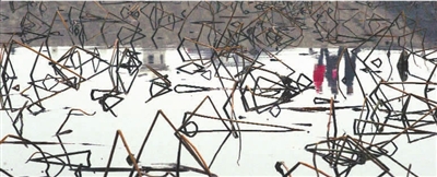 圖:進入冬季,治水植物的殘枝敗葉漂浮在湖面上。記者高寶燕攝