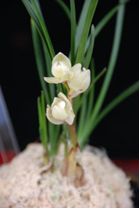 據(jù)工作人員介紹,這株“素冠荷鼎”由四株蓮瓣蘭苗木組成,市面上極其少見,屬蘭花種別中的稀世珍寶,也是云南省大理蕩山洲蘭園的鎮(zhèn)園之寶,已經(jīng)連續(xù)五年蟬聯(lián)蘭博會(huì)特等金獎(jiǎng)。據(jù)悉,去年曾有買家出價(jià)1000萬元人民幣,主人都沒舍得賣,目前,該株蘭花已估價(jià)1500萬元人民幣,如果有買家出得起價(jià),也并非非賣品。 為保護(hù)好這個(gè)寶貝,這株天價(jià)蘭花不僅有透明玻璃框保護(hù),更有五名保安圍在周圍當(dāng)起保鏢。 2010年3月20日上午,云南產(chǎn)“素冠荷鼎”在亞太蘭花大會(huì)展臺(tái)前集聚了不少圍觀市民,不停議論著它的身價(jià)。據(jù)工作人員介紹,“素冠荷鼎”已經(jīng)連續(xù)五年折戟蘭博會(huì)特等金獎(jiǎng),名聲煊赫,2009年就有買家出價(jià)一千萬,“主人都沒舍得賣!”由四株連瓣蘭苗木組成的“素冠荷鼎”,市面上極其少見,屬蘭花種別中的“稀世珍寶”。蓮瓣蘭“素冠荷鼎”是云南大理蕩山州蘭園的鎮(zhèn)園之寶。 據(jù)了解,蓮瓣蘭“素冠荷鼎”姿態(tài)優(yōu)美,數(shù)量極其稀少,集合了蓮瓣、素心及葉型草三大精品蘭特點(diǎn)于一身。在市場上,一株“素冠荷鼎”的售價(jià)高達(dá)400萬。 據(jù)悉,與蓮瓣蘭“素冠荷鼎”同時(shí)獲得此次蘭花“兩會(huì)”特別金獎(jiǎng)的另外一株蘭花名為“龍袍”,是由日本名古屋國際蘭花大會(huì)組委會(huì)永田治彥選送的微中子碧玉蘭。 玉溪蘭協(xié)副會(huì)長晉小容說“素冠荷鼎”的花有一荷、二素、三奇的特點(diǎn),花的質(zhì)量、檔次高,在玉溪還沒有人引進(jìn)這個(gè)品種,加之他也很喜歡這種花,便用位于江川的兩套60平方米的海景房換了一苗“素冠荷鼎”。 下面就讓我們近距離欣賞素冠荷鼎蘭花的廬山真面目吧。