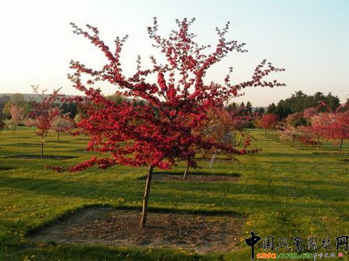美國杰作Malus‘American Masterpiece',這是近幾年在美國流行的品種,還在保護期內,以后很可能在中國廣泛應用,因為其花色十分艷麗。