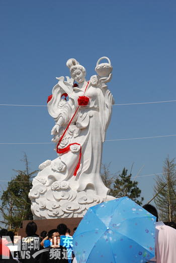 月季仙子雕塑下人流涌動 (湯乙清 攝)