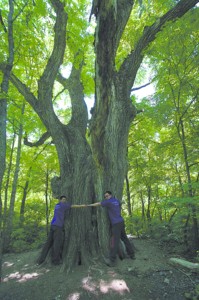 這棵“楊樹王”茂盛粗壯,兩位記者根本不能將其合抱。據推測“楊樹王”的年齡可能至少達到了500歲。 米豆 攝