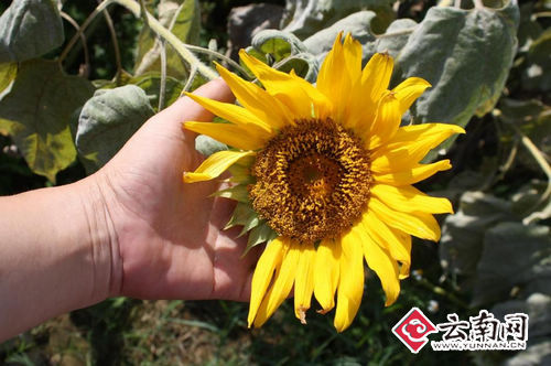 干旱后遺癥明顯 400多畝觀光葵花全染白粉病 開遠市春季在公路邊所種下的400多畝觀光葵光,卻因為染上了白粉病而變得病怏怏的,讓該市首年推出的鮮花大道就打了折扣。當地人士稱:這都是大旱惹的禍! 連摳幾顆都是癟的葵花籽 好多葵花餅只長到手掌大