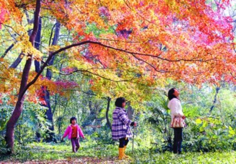 中國風景園林網訊 說起南京紅葉,人們就會想到的是棲霞山。其實,南京的中山植物園紅楓崗更是滿園秋色,銀杏、櫸樹、黃連木、水杉、池杉、錢松等彩葉樹種,氣象萬千。占地近三公頃的紅楓崗景區,紅楓、羽毛楓、茶條槭、元寶槭、火炬樹等近二十種、上萬株紅葉樹種蔚然壯觀,不少游客來此一睹為快。