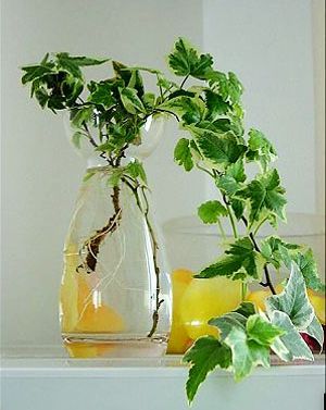綠蘿 ![]() 天南星科喜林芋屬植物,屬于攀藤觀葉花卉。性喜溫暖、潮濕環(huán)境,藤長可達數(shù)米,節(jié)間有氣根,葉片會越長越大,葉互生,常綠。蘿莖細(xì)軟,葉片嬌秀。水養(yǎng)很簡單,保證2至3天換一次水,配以簡單的營養(yǎng)素。綠蘿具有很高觀賞價值,蔓莖自然下垂,既能凈化空氣,又能充分利用了空間,為呆板的柜面增加活潑的線條、明快的色彩。 常春藤 ![]() 五加科,常春藤屬,是最理想的室內(nèi)外垂直綠化品種,常綠藤本,枝蔓細(xì)弱而柔軟,具氣生根,能攀援在其他物體上。葉互生,葉片三角狀卵形,盆栽需要量日漸增多。它是典型的陰性植物,能生長在全光照的環(huán)境中,在溫暖濕潤的氣候條件下生長良好,不耐寒。水養(yǎng)簡單,生命力強。 文竹 ![]() 百合科天門冬屬,多年生常綠草本花卉。莖細(xì)弱,枝纖細(xì)呈葉狀,水平開展。花小,白色。漿果球形,黑色。果實成熟后,呈現(xiàn)出濃綠叢中點點紅的景象,清雅可愛。植株耐陰性強,擺在床頭、桌案,文雅大方,是一種很好的室內(nèi)花卉。文竹也是理想的切花襯托材料。近年來,已經(jīng)成功開發(fā)出水養(yǎng)文竹,置于居室內(nèi)更是清雅。