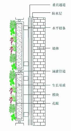城市化隨著人口快速增加,帶來土地供應緊張、城市熱島效應、生態環境惡化等一系列問題。而墻面綠化為改善城市生態環境帶來了希望。墻面綠化也得到了很多綠化工程公司的重視,但目前國內對其研究還不充分,很多業內人士迫切希望了解墻面綠化的發展情況。下面筆者就墻面綠化的概念、類型進行闡述,請同行多多指正。 墻面綠化是人們在建筑墻體、圍墻、橋柱、陽臺、窗臺等處進行垂面式綠化,從而改善城市生態環境的一種舉措;是人們應對城市化加快、城市人口膨脹、土地供應緊張、城市熱島效應日益嚴重等一系列社會、環境問題而發展起來的一項高新技術。與傳統的平面綠化相比,墻面綠化有更大的空間,讓“混凝土森林”變成真正的綠色天然森林,是人們在綠化概念上從二維空間向三維空間的一次飛躍,將會成為未來綠化的一種新趨勢。 墻面綠化可緩解城市熱島效應,使建筑物冬暖夏涼;顯著吸收噪音,滯納灰塵;可凈化空氣;增加綠量,顯著改善城市生態環境。根據墻面綠化的不同方式,我們把它分為六種類型。 一、模塊式 即利用模塊化構件種植植物實現墻面綠化(圖1)。將方塊形、菱形、圓形等幾何單體構件,通過合理搭接或綁縛固定在不銹鋼或木質等骨架上,形成各種景觀效果。模塊式墻面綠化,可以按模塊中的植物和植物圖案預先栽培養護數月后進行安裝,壽命較長,適用于大面積的高難度的墻面綠化,特別對墻面景觀營造效果最好。