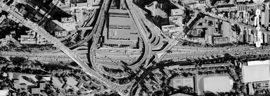 ![]() 巴黎環(huán)線與火車終點(diǎn)站交匯處,是巴黎環(huán)線為數(shù)不多的高架段,通過(guò)拉索結(jié)構(gòu),形成了良好的城市景觀。 ![]()