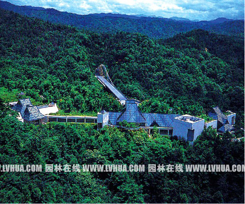 --自然與建筑的融合 日本MIHO美術館是著名建筑師貝聿銘先生的作品。該美術館于1990年開始設計.1997年11月3日建成開館。它雖然名為美術館.但實際上是一個博物館。它的特色是收藏了大量精美的東方藝術品.在建筑設計上也體現了現代科技與東方美學內涵的結合。它與基地周邊環境具有微妙的關系.它所在的滋賀縣信樂山在日本自古就充滿神秘,有著悠遠的宗教歷史背景。而這美術館和業主的教堂(設計紐約世貿中心的建筑師山崎實作品,1983年建成)、鐘樓(也是貝聿銘作品,1989年建成),以及山腳下的“信樂之鄉”生態農場示范區形成藝術、自然及建筑相互共鳴的場所。 總體鳥瞰水彩圖紙。圖紙西北側為業主的教堂和鐘樓.東側為MlH0美術館,西南側為“信樂之鄉”生態農場示范區。三組建筑群隱藏于信樂山的森林之中(南云設計繪制水彩畫) 一、理念 MIHO美術館表達了貝聿銘先生的一個主要理念.就是“自然與建筑的融合”。 日本MIHO美術館的選址就反映了貝聿銘先生的上述理念。他提到.原來業主方選擇的用地是在兩條河的交匯處,但是要到達該處必須要從山上面繞下來.他覺得不是很合理,就回絕了這個項目的設計要求。不久,業主方又找到了其它的地塊,可由于沒有合適的道路方便交通通行成了最大的問題。由于修建道路要破壞山林的生態環境,貝先生再一次拒絕了這個方案。后來.業主方的一位成員可以出讓這塊建設用地對面的土地,于是貝先生想到了在兩個地塊中間挖一條隧道,然后不破壞環境.不砍伐樹木,架一座吊橋,這樣就形成了本項目最精彩的入口景觀區域。 左圖:在隧道和橋梁上方的山坡上拍攝美術館.可以眺望遠山上的鐘樓和教堂(水野敬久拍攝) MIHO美術館的立意也來源于貝先生的上述理念。由于他具有很深的中國古典文化造詣,所以貝先生引用了中國晉代陶淵明的《桃花源記》表達了該設計的立意。當他提到桃花源時,深諳中國傳統文化的業主馬上就聯想到了典型的中國古代景觀,有山坡、峽谷,周圍云霧繚繞,建筑掩映在森林之中若隱若現的場景。建筑師描繪的畫卷和業主的夢想達成了共識,文學和藝術的深遠內涵共同滲透到MIHO美術館的建設工程之中。 右圖:貝聿銘顯色用四角錐創造出類似山峰或峽谷的形式.使該建筑與周邊的群山融合在一起。四角錐的形體大量使用玻璃和鋼結構(照片][MIHO美術館宣傳冊) 在Gero yon Boehm(以下簡稱“波姆”)采訪貝聿銘先生時,曾針對MItlo美術館如何協調建筑與自然的過程提問道:“您是個對自然極為敏感的人.聽說博物館所在的山丘在您建設時突然消失了兩年,您能講一下其中有趣的故事嗎?”貝先生回答說.這個建筑設計由于日本《自然公園法》的限制使之大部分建筑物都在地下,因此問題就是如何在面積有限和地形制約的情況下建造大面積的地下建筑。解決上述問題有兩個方法,第一就是往下挖,將建筑物建于其中.但是該方案既貴又慢,而且還要面對地震的問題;第二個方法就是挖土并將建筑物建于其中,再將土蓋上。由于當地政府同意第二個方法,并要求把挖走的土回填回來并必須種上與原來同樣的樹.因此,山丘消失后又原樣修復.并使建筑與自然更有效地融合了。 從波姆對貝先生的采訪中.他提及MIHO的設計靈感取材于日本江戶時代的農舍。 而本項目的業主追求用純天然的農耕方法來創造食物.并以山腳下的“信樂之鄉”農場示范區與山谷中的MIHO美術館相互呼應。該農場示范區中有兩座200年歷史的古代農舍,具有江戶時代的風格,是業主特意從日本琵琶湖的東北處搬遷到這里的。這兩座古農舍注重的是建筑本身的實用性.而非裝飾性,如從粗線條曲線的大梁到簡潔質樸的墻壁和地板都可以體現出來,這古農舍所采用的屋頂是由茅草搭成.這些都說明了它們是大自然的一部分。而且它們與MIFt0美術館相同之處在于,它們都是完全融于周圍的自然風景之中的建筑。 “信樂之鄉”生態農場示范區中的兩座2000年歷史的古農舍(小池澄男 拍攝)