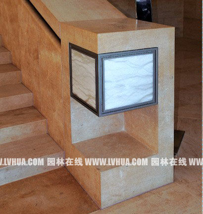 陽光從玻璃屋頂及木格柵上投射下來.落在貝先生精選的法國(guó)石灰?guī)r石材墻面的光影效果光影的效果.四角錐的頂視效果