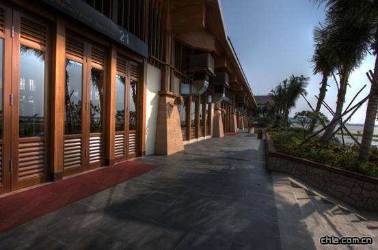 由于旅客第一印象的獲得往往從飛機舷窗開始,因此建筑師考慮更多的是鳥瞰效果,以鋼和玻璃作為航站樓主要的建筑材料,給旅客以簡潔,通透的感覺。屋面設計采用坡屋頂的形式,從俯視角看有加強整個建筑體立體感的優勢,給人一種建筑維和的感覺。而且坡屋頂的設計包含了中國傳統文化的因素,,又有利于屋面排水,特別適合海南這樣的多雨水城市,更重要的是能起到提高航站樓內部空間的作用,由此使整個建筑群與周圍自然環境和諧統一。航站樓的陸側立面和側面采用了大量的落地玻璃窗,具有良好的日照采光,更能使旅客透過玻璃窗欣賞到整個機場的建筑景色,消除旅客等待飛機的疲勞感,再加上屋頂上大面積的屋面采光帶,更使整個建筑體給人一種開敞通透的感覺,使每位沐浴陽光的旅客以身心上的放。另外,以法國尼斯機場航站樓為設計原型的三亞鳳凰機場航站樓首次在國內采用了魚腹形鋼屋架結構,屋頂上的建筑結構外露,也是建筑師出于藝術角度的考慮,旨在帶給人一種意外的藝術效果,由鋼架結構本身的組合規律作為裝飾,視覺上給人一種結構美的享受。