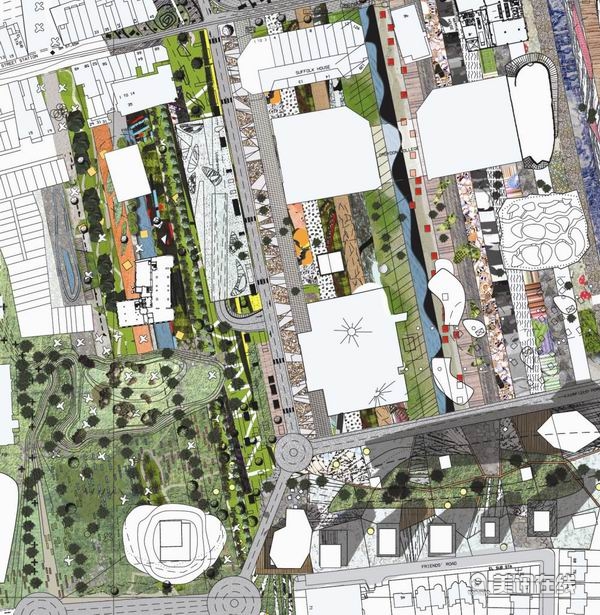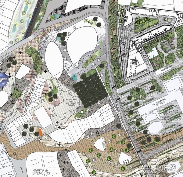 大賽還對韋爾茲利道東西兩部分的建筑類型和外觀、公園、草坪、廣場以及其他公共空間的布局安排提出了初步設計方案。奧爾索普一貫主張戶外“起居室”的多樣性,而本次改造方案的關鍵點也正是“多樣性”的體現,在周圍現有高樓的大背景下,小型的建筑物如同室外小品一樣。