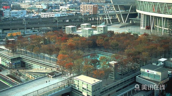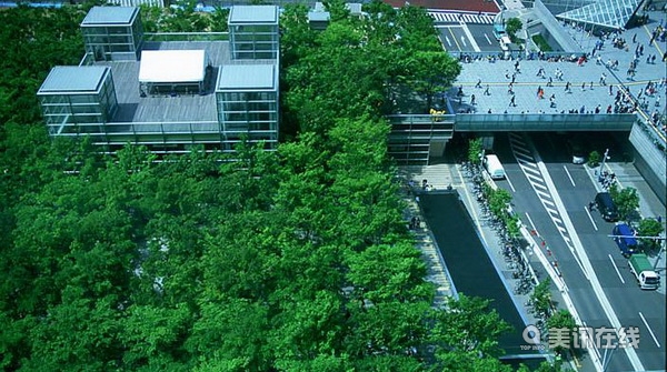 日本崎玉縣空中森林廣場(Saitama Sky Forest Plaza)于2000年5月5日建成對公眾開放,在市中心鐵路車場遺址上建造,有1萬平方米,“空中森林”為基本設計概念。在架空7m高的二層近方形場地內,人工移植220棵櫸樹。在城市中心造一片自然,這在世界上也是絕無僅有的。它以櫸樹這種植景觀取代了那種以建筑廣場道路為主的市中心公共景觀,改變了日本人的概念,與過去傳統的枯山水的理念是一脈相承的。這一切是明顯人工化的痕跡,自然是提煉升華的,自然的形與象,似是而非,卻激起了人的思考聯想,在陽光照耀下,白沙浩渺,景物模糊、曠遠。