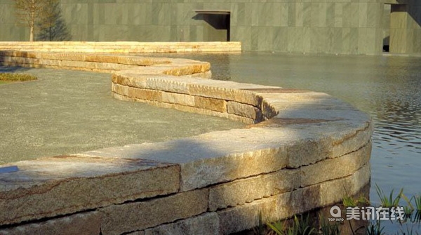 PWP景觀設計事務所的設計師們將所有的建筑物放置在了一個重新設計的公園背景里,在基地的正中央修建了一個大池塘,為美術館帶來新鮮的感覺,并將其與原有的老舊建筑從視覺上區分開來。設計師還圍繞基地周圍設計了一圈小樹林,面向下面的城市中心區創建了一種植物景觀,并指引游客找到正確的通路。