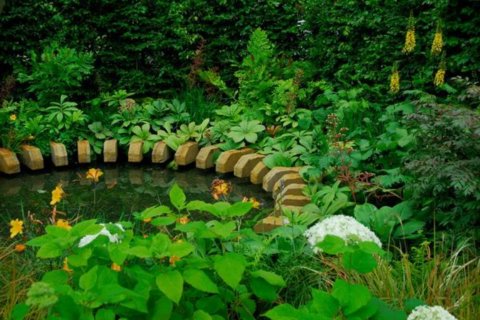 享受安寧,平靜的池塘,隨處都是郁郁蔥蔥的種植