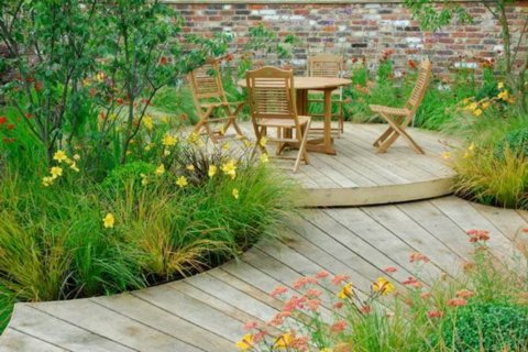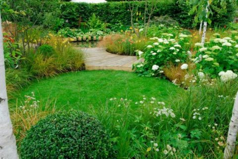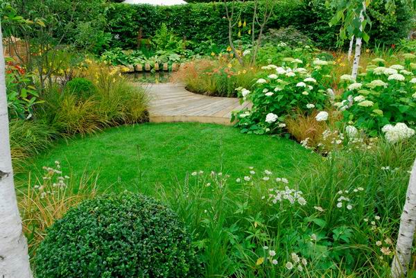 幽靜的草坪被包圍在自己最喜愛的植物之中