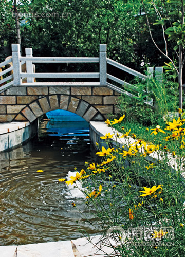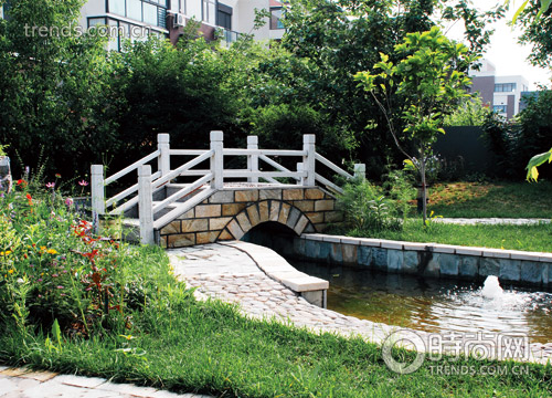施工過程中根據周圍的環境搭配小石橋,并配了漢白玉欄桿。