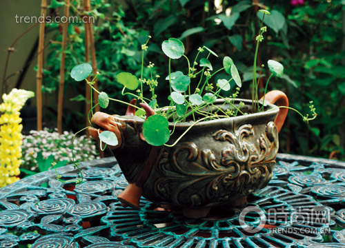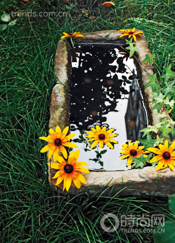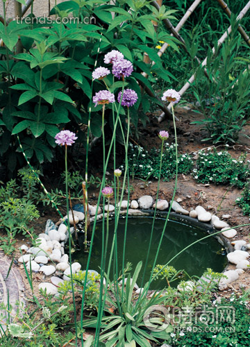 埋一只缸在土里,周圍用鵝卵石遮蓋邊緣,很自然地就形成了一處水景,你還可以在此種荷花或睡蓮。