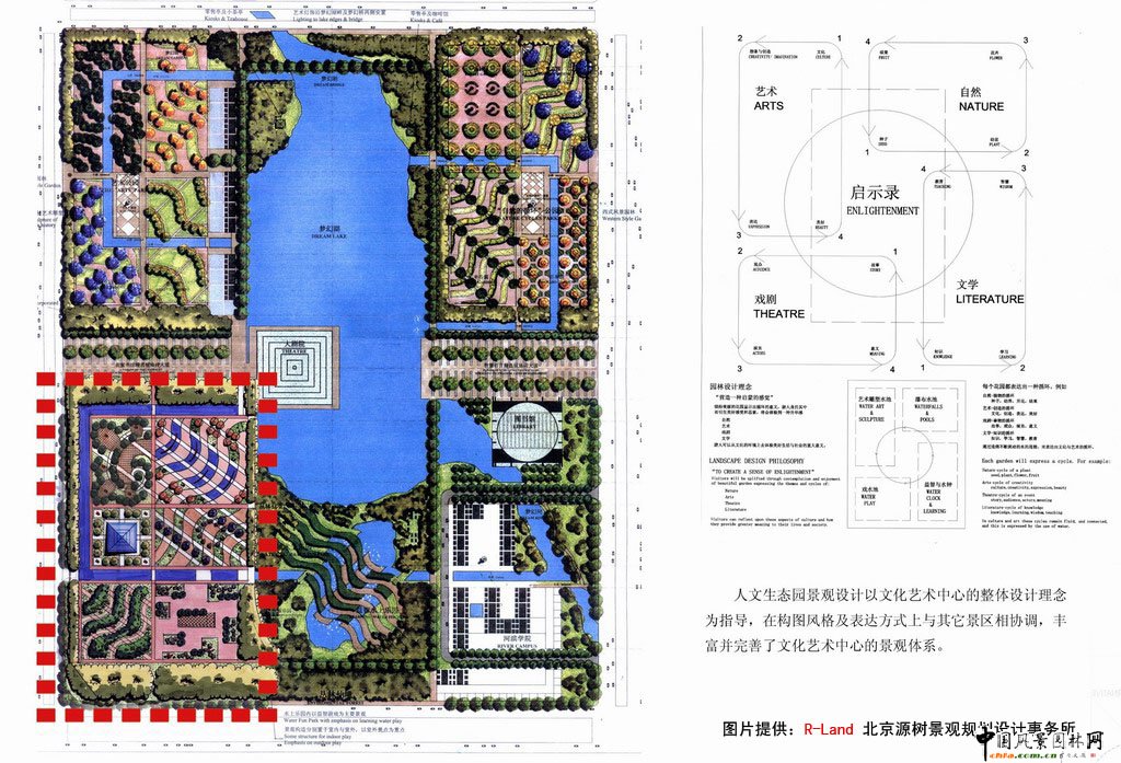 "廊坊文化藝術中心"位于廊坊市中心地帶,占地39.6萬平米。景觀設計以"啟示錄"作為設計理念,通過對園區內藝術、自然、文學、戲劇四大主題的循環表達,實現人與景觀的融合與溝通,從而達到了提升人們文化精神的建設目的。