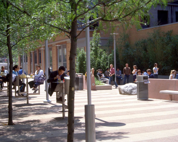 Capitol Plaza位于Chelsea Heights嶄露頭角的居民區,在weekend antiques markets 和Flower District shops中間。這個開放的公共空間連接著26街和27街,東邊有Sixth Avenue, features garden seating areas, 散步區和小餐館。在曼哈頓地區公共開放空間比較少,Capitol Plaza的設計目標是給人們提供一個可休憩的空間,人們可以觀賞植物,就餐和逛商店。
