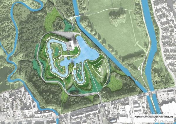 2.新公用場地——皮艇水道將被修建在一個寬闊的公用場地的內部。景觀上的工作包括美化貫穿整個場地的小路和橋梁,以達到使觀眾進入并觀賞的目的。