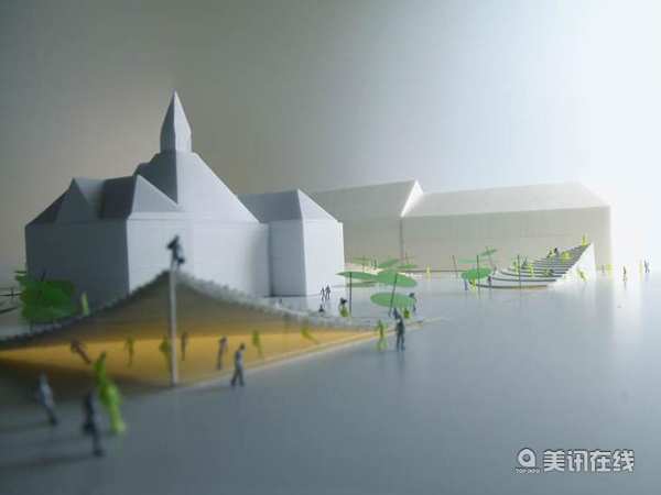 由于Umea市政廳廣場(chǎng)上充斥著各種臨時(shí)搭建物與快餐店,因此BIG事務(wù)所受委托對(duì)其進(jìn)行重新設(shè)計(jì),并將其改造成為一種曲線形的表面結(jié)構(gòu),并將各種小型的服務(wù)設(shè)施抬高架設(shè),而商店與咖啡座則朝向人行道進(jìn)行設(shè)計(jì)。經(jīng)過(guò)改造后的市政廳廣場(chǎng)已經(jīng)儼然一塊優(yōu)雅的彎曲飛毯,上面有各種戶外活動(dòng)區(qū),顯然是對(duì)古老的市政廳大樓的一種贊賞。