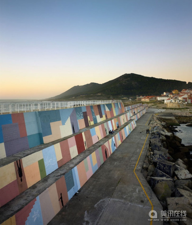 最終的防波堤是設計團隊的第四個創意設計。第一和最后一個創意是在在基礎底色上繪畫一幅巨大畫,這幅畫就好像是一種“數碼鏡子”。轉自建筑中國網。