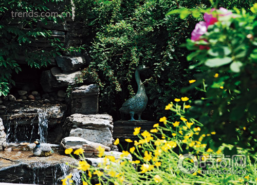 酷愛園藝的媽媽為女兒專門設置了前后兩處水景:前院的半圓形歐式小男孩噴泉,貫穿整個后院的中式自然山水小池。這兩部分作用各不相同,但都是女兒喜歡的地方;▓@里設計的一切都充分考慮到她今后的成長,水景的布置也不例外,而且它是這個花園的最大亮點。后院的水系是小主人和伙伴們最愛玩耍的地方:劃艇、游泳、戲水,孩子們天生熱愛水,那個小池中最多一次容納了7位小朋友。