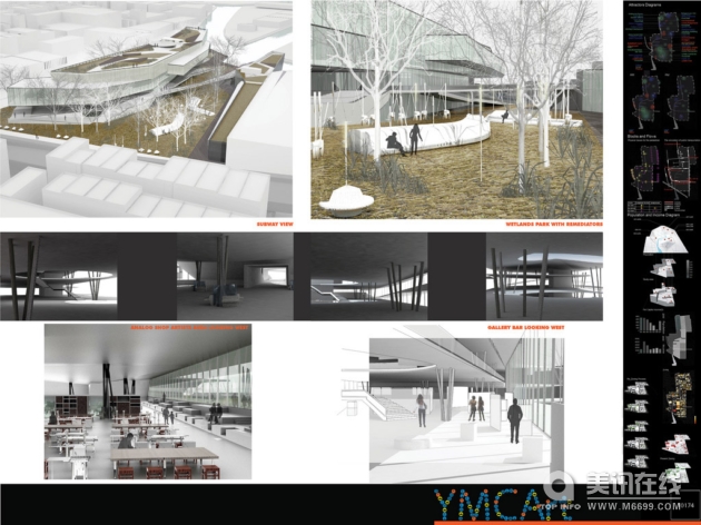 我們的項目是加強這個地區的公共場所建設:藝術空間+社區空間+研究空間。主建筑位于十五大街的北部,是藝術空間和研究空間結合的地方,主要研究環境問題和改進項目。主建筑還包括辦公室和研究實驗室,這樣能為項目提供資金來源。以前工廠廢址的東西可以改造成當地居民的娛樂區。