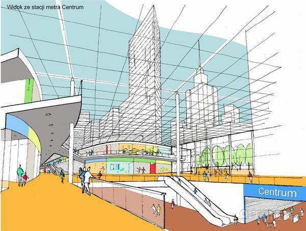 為了增強(qiáng)該地區(qū)的連通性,Aedas事務(wù)所的設(shè)計方案引進(jìn)了兩大創(chuàng)新。第一,降低最繁華的Marszalkowska街交通流量,修建出多條人行道將該地區(qū)與東邊的歷史街區(qū)連通起來;第二,在西南角主車站正前方修建了一個空中“到達(dá)廣場”,站在Emilia Plater街之上,為人們欣賞城市風(fēng)景創(chuàng)造了一個平臺。