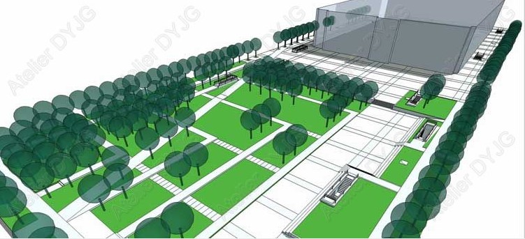 6#地塊現(xiàn)為變壓站、冷卻塔、中水處理站等配套設(shè)施。環(huán)境設(shè)計以簡潔樸素為主。運用自然式地形和植物在行人與設(shè)施之間建立起一道屏障,既美化了環(huán)境,又保證了安全。