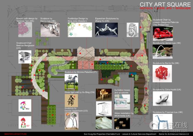 考慮到附近是奧運會馬術比賽的場地,此處的步行道已經改造成一個時尚前衛的國際性公共藝術廣場,廣場于7月24日開放。城市藝坊的目的是豐富這里公共場所,并增加香港的藝術文化水平。