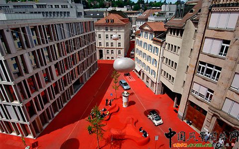 中國風景園林網 城市客廳位于瑞士圣加倫中心地帶,由Carlos Martinez和Pipilotti Rist聯合為一個“創造公共起居室”的競賽而設計。