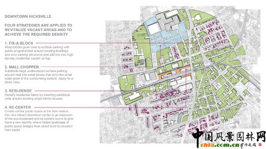?怂咕S爾(紐約城郊)采用四大戰略改變空地以達到要求的郊區密度,成為了恢復郊區活力的典范。
