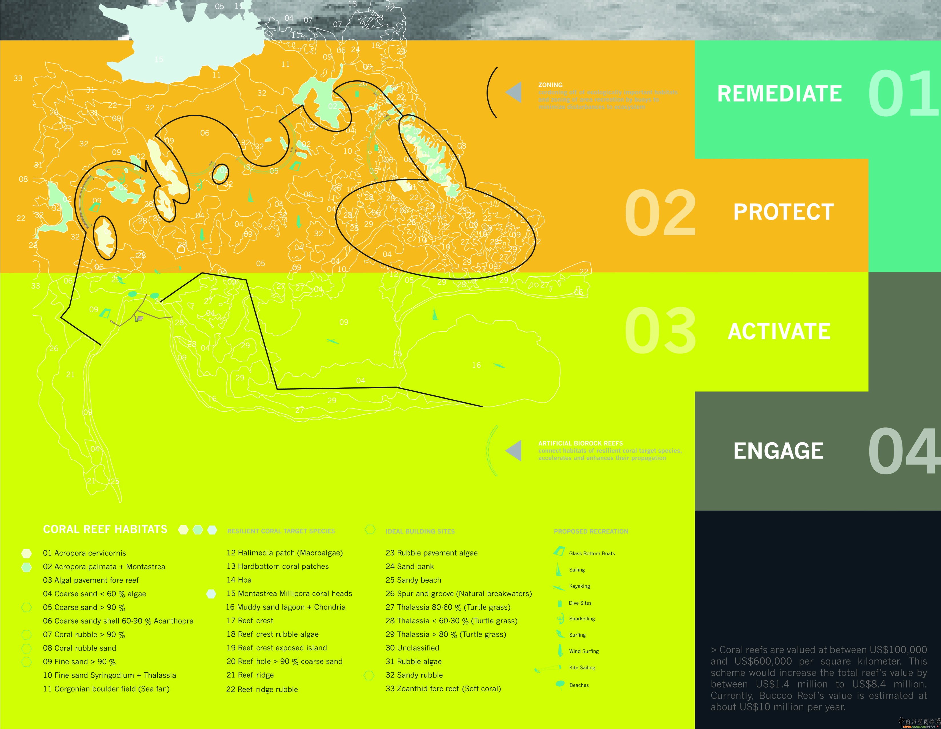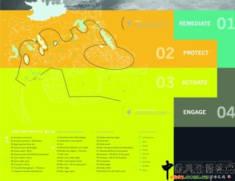 圖5、重塑活力。鑒于該島獨特的旅游功能及珊瑚特性,制定由四個組成部分的方案來解決該島生態問題和未來的發展。